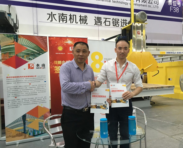 2015年11月8日,我司與殼牌正式簽署戰略合作協議,雙方就技術合作、品牌共建、售后市場共同開發與客戶服務等方面達成高度共識,致力于為廣大石材機械客戶提供更好的售后服務。 石材機械行業設備工作條件苛刻,重載荷、高粉塵環境對設備維護保養與潤滑油品都提出了很高的要求。通過提供優質的潤滑油產品,以及專業的售后服務,同時不斷提升客戶在設備維護方面的水平,水南與殼牌公司將共同為行業用戶創造更多價值。 通過雙方的深入合作,水南與殼牌將充分發揮在各自領域的技術及資源優勢,為客戶提供更加可靠的產品和專業的服務。在潤滑油品應用與管理及設備運行維護等方面加強與客戶的溝通協作,為客戶提高管理效益,降低運行維護成本,帶來更多價值。